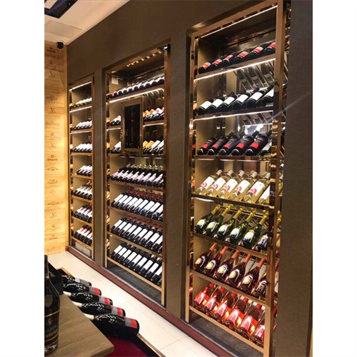 酒庄玫瑰金不锈钢恒温酒柜酒窖定做_不锈钢恒温酒柜厂家