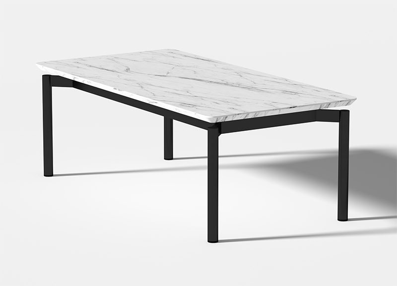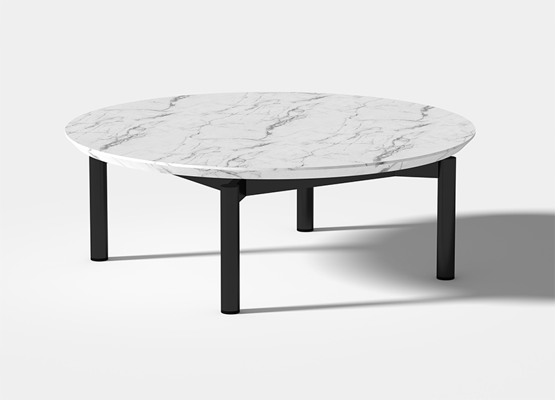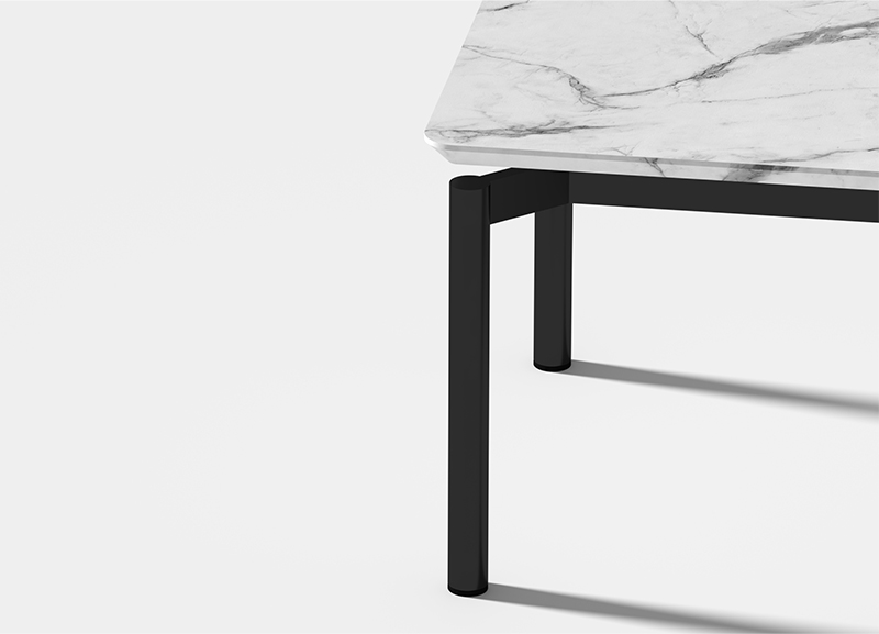 米洛茶几作为米洛沙发的系列产品,沿用了其独特的脚架形式;在极简、百搭的理念下,搭配黑白石纹的岩板台面,形成了极具有漂浮感和建筑感的几何外形。