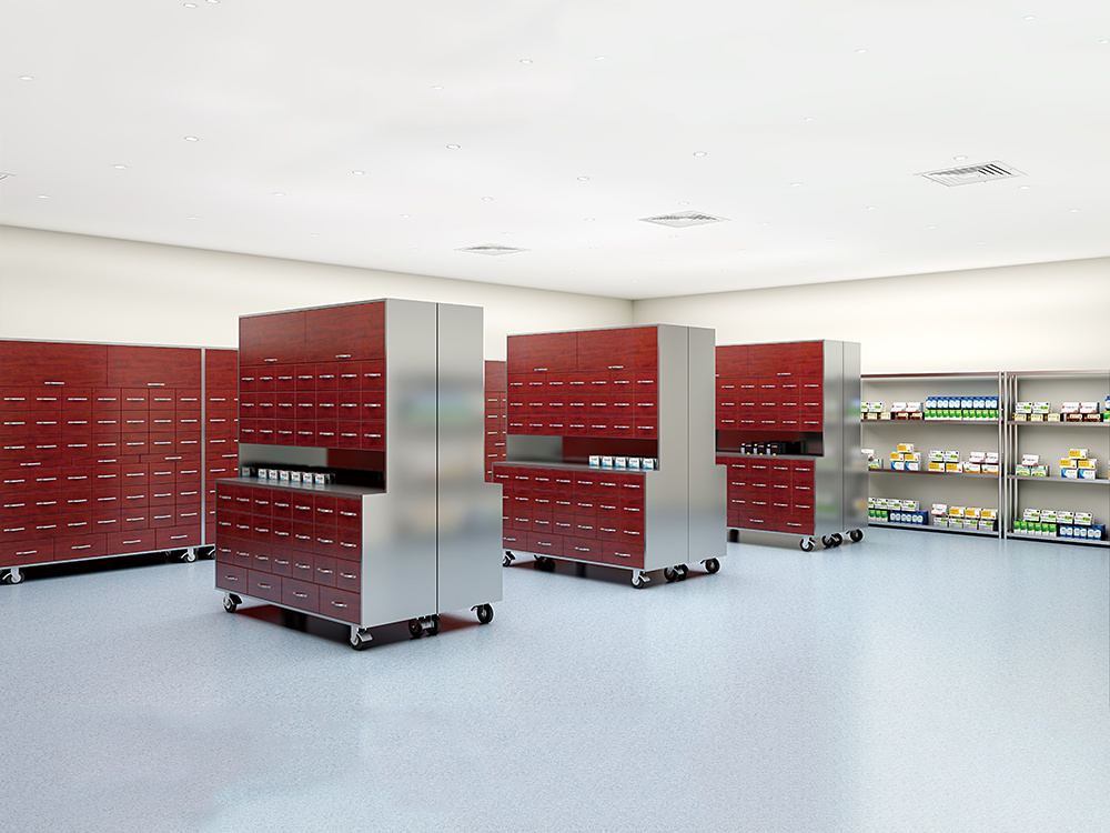 9、中药柜下带优良脚轮,移动方便。